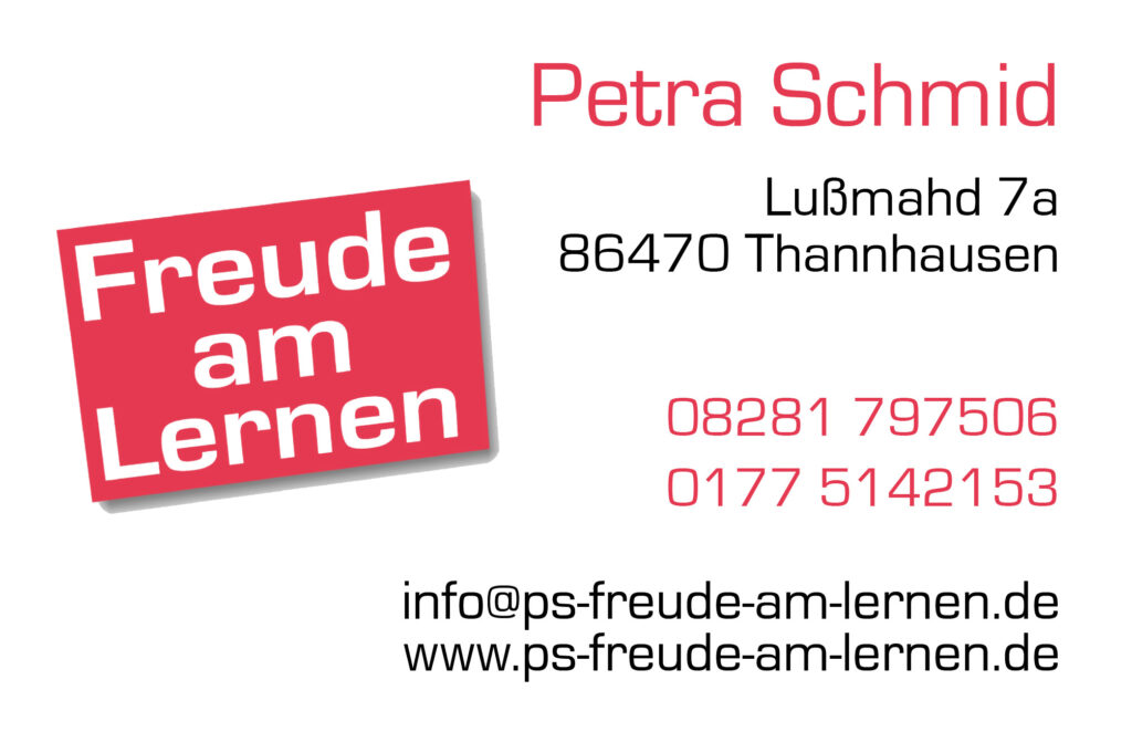 Ich bin Petra Schmid, Lerntherapeutin aus Leidenschaft und begleite seit fast 20 Jahren Kinder und Jugendliche aller Jahrgangsstufen in den Bereichen Lesen, Schreiben, Rechnen.